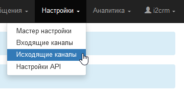 В личном кабинете i2crm в верхнем правом углу нажмите кнопку «Настройки».